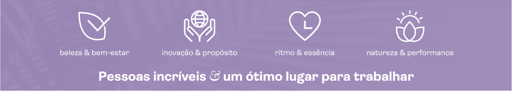 Nossas fórmulas foram desenvolvidas com ativos naturais cuidadosamente selecionados. Somos cruelty free e priorizamos o cuidado com o meio ambiente, com a saúde e com as relações humanas em todos os processos.